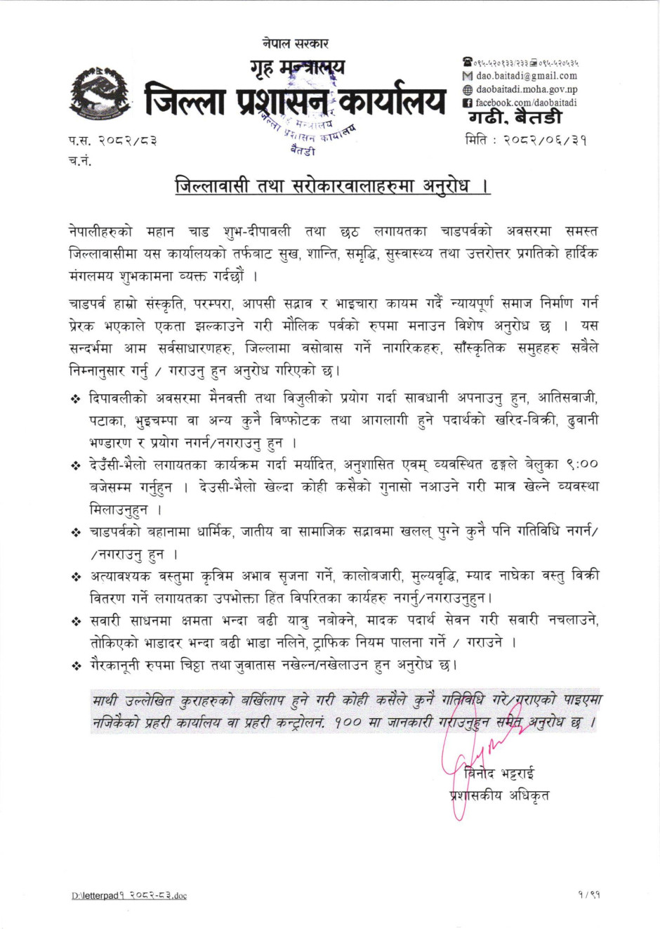 जिल्ला प्रशासन कार्यालय बैतडीको अनुरोध